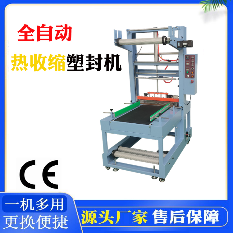 袖口熱收縮包裝機的工作原理要相比那些收縮機等較大型的包裝設備要簡單些容易了解些。當裝熱收縮膜物品的包裝放置熱封膜輸送帶上,袋的封口部分被自動送入運轉熱收縮槍的兩根封口帶之間,并帶入加熱區,加熱塊的熱量通過封口帶傳輸到袋的封口部分,使薄膜受熱熔軟,再通過冷卻區,使薄膜表面溫度適當下降,然后經過滾花輪或印字輪滾壓,使封口部分上下塑料薄膜粘合并壓制出網狀花紋或印制標志,再由