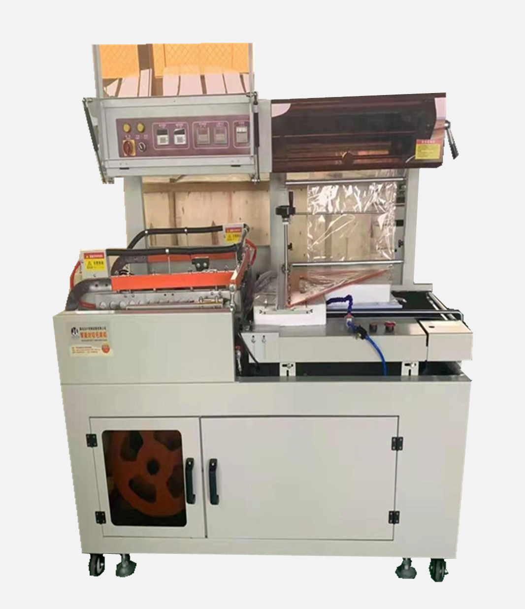 2、 采用恒溫加熱封切系統(tǒng)可用于封切POF等各種工業(yè)標(biāo)準(zhǔn)的收縮膜。包裝規(guī)格大小不同的產(chǎn)品,只需用手